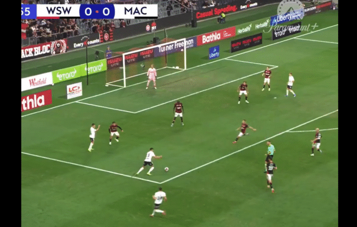Avausjakson lopulla nähty voittomaali oli komea. Vierasjoukkue Macarthur FC:n Rafael Durán sai pallon haltuunsa rankkarialueen rajoilla ja laukoi täydellisesti pallon oikeaan yläkulmaan, 0-1.