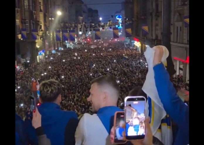 Ottelun jälkeisenä yönä Bosnia ja Hertsegovinan joukkue matkasi Zenicasta pääkaupunki Sarajevoon, missä keskustan kadut olivat täynnä juhlivia ihmisiä. Joukkue oli 40-vuotiaan hyökkääjälegenda Edin Džekon johdolla keskellä kansanjuhlaa.