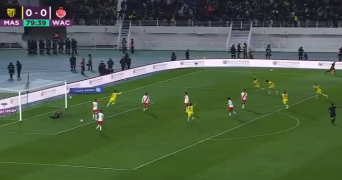 Ottelun voittomaali nähtiin 80. minuutilla – ja se olikin aivan uskomaton! Maghreb Fèsin Driss El Jabli sai pallon haltuunsa rankkarialueen ulkopuolella ja laukoi kaikkien yllätykseksi niin sanotun rabona-potkun takajalallaan. Pallo meni voimalla maaliin!