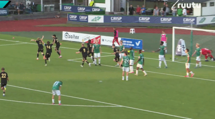 Ensin 84. minuutilla Elari Hautamäki laittoi rankkarin sisään, 2-1. Sitten 88. minuutilla Adam Zahedi viimeisteli, 2-2. Ja vielä 92. minuutilla Akseli Tervaniemi painoi puolittaisesta läpiajosta voittomaalin, 2-3!