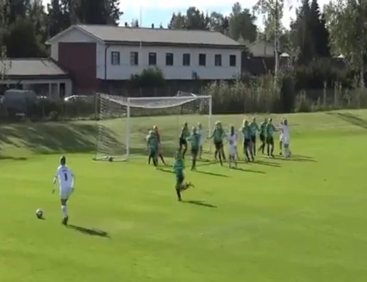 Video: Jesse Holmströn laukoi maalin yli puolesta kentästä Kolmosessa