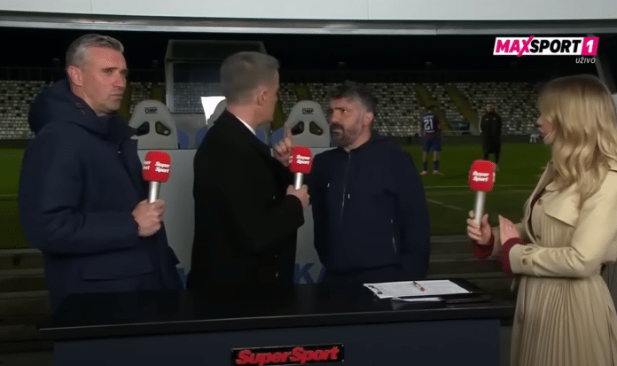 Hajduk Splitin päävalmentaja Gennaro Gattuso ajautui tulikivenkatkuiseen keskusteluun kroatialaisen jalkapalloasiantuntijan ja entisen Hajduk Splitin pelaajan Josko Jeličićin kanssa ottelun jälkeen TV-studiossa.