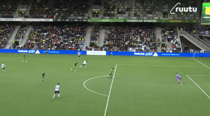 Riskin tekemään 2–0-osumaa edelsi Haka-kippari Niklas Fribergin karmea syöttömoka, jonka jälkeen Haka-maalivahti Liam Hughes joutui kaatamaan Riskin.