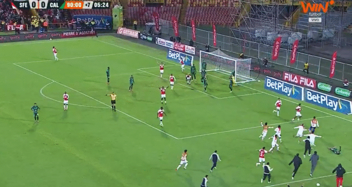 Ottelu oli jo etenemässä maalittomaan tasapeliin, mutta lisäajan lisäajalla nähtiin maali. Santa Fe sai kulmapotkun, ja jälkitilanteessa pallo ajautui oikeaan laitaan, missä Harold Mosquera voitti kaksinkamppailun 100-0.