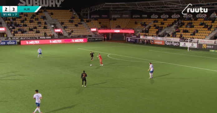 Ottelun 92. minuutilla HJK johti numeroin 2-3, ja palloa syöteltiin alakerrassa. Pallo pelattiin maalivahti Ricardolle, joka hämmentävästi aikaili pallon kanssa, ja takaa hiipinyt SJK-pelaaja sai tökättyä pallon Olatoundji Tessilimille. Mutta totaalinen avopaikka päättyi fiaskoon, sillä Tessilimin laukaus meni ohi.