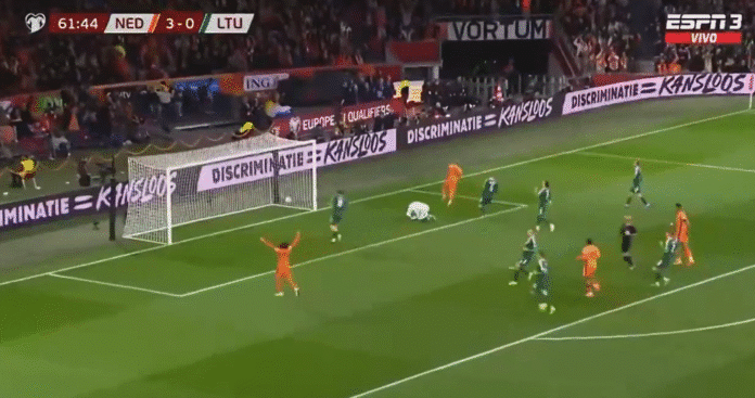 Liettua sai kulmapotkun, mutta vain 14 sekuntia myöhemmin pallo oli heidän maalissaan. Hollanti lähti nopeaan vastahyökkäykseen, Malen jyräsi tylysti ja lopuksi tälläsi pallon maaliin, 4-0.