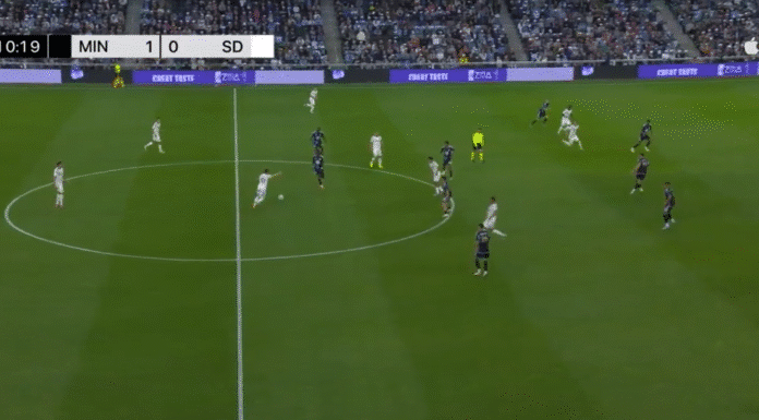Kotijoukkue Liecester meni johtoon heti 2. minuutilla, kun Bilal El Khannous syötti Jamie Vardyn läpiajoon, ja pallo oli maalissa kliinisellä viimeistelyllä. Tilanne näytti paitsiolta, mutta VAR-tarkastuksen jälkeen osuma hyväksyttiin, 1-0.