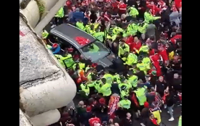 Valioliigan suvereenisti voittaneen Liverpoolin mestaruusjuhla sai järkyttävän käänteen maanantai-iltana, kun autoilija ajoi väkijoukkoon Water Streetillä kesken paraatin.