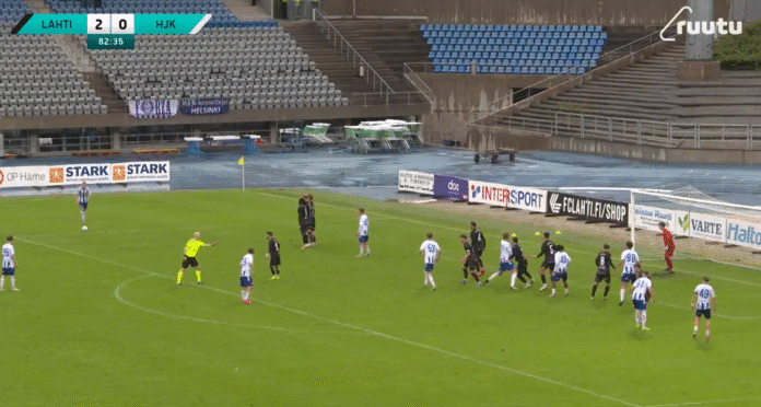 HJK:n farmiseura Klubi 04:n 21-vuotias Kaius Hardén viimeisteli tyylikkään maalin vapaapotkusta Lahdessa.