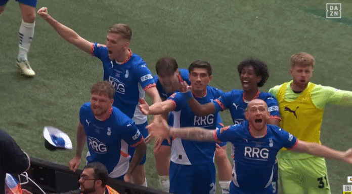 Oldham Athletic nouse takaisin Englannin jalkapalloliigan alaisiin sarjoihin dramaattisen jatkoaikavoiton jälkeen Wembleyllä.