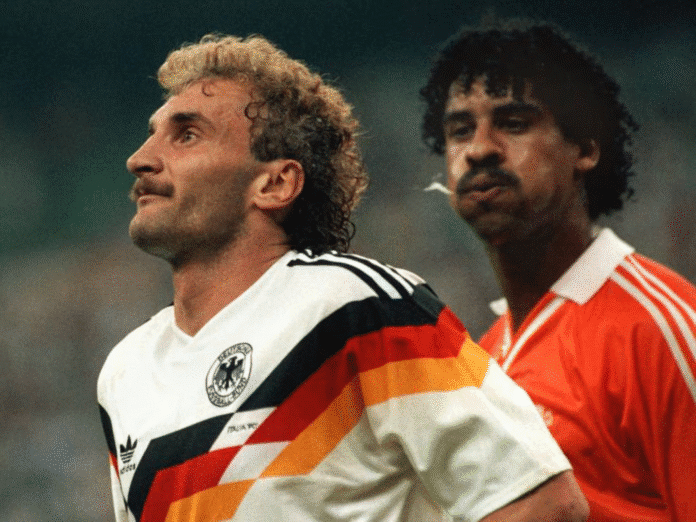 Kesäkuussa 1990 pelattiin yksi jalkapallohistorian klassikoksi jääneistä otteluista, kun Hollanti ja Länsi-Saksa kohtasivat Italian MM-kisojen neljännesvälierässä. Peli muistetaan muun muassa Frank Rijkaardin ja Rudi Völlerin tunteiden kuumenemisesta.