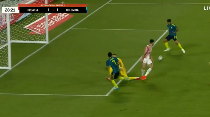 Kun ei Kolumbialle maistunut, teki Kroatia avausjakson lopulla 1–2-voittomaaliksi jääneen osuman. Viimeistelijänä toimi Igor Matanović.