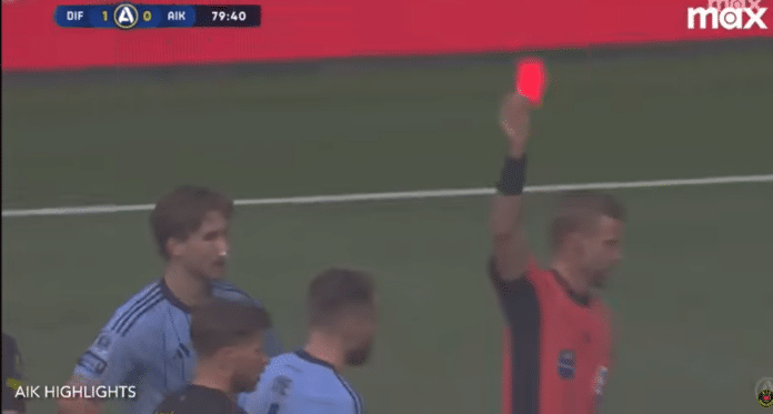 30-vuotias Djurgårdenin keskuspuolustaja Miro Tenho joutui katselemaan punaista korttia Ruotsin pääsarjassa.