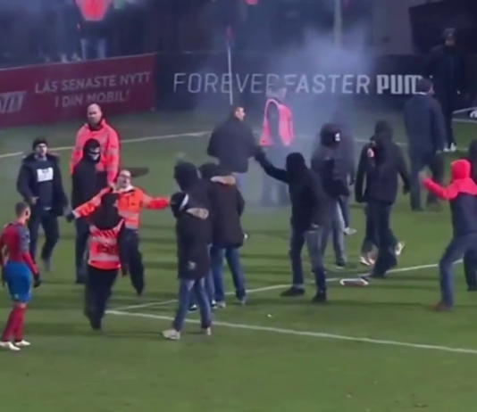 Video: Kentälle rynnännyt huligaani pahoinpiteli maalivahdin Allsvenskanissa
