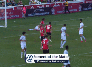 Kanadassa nähtiin harvinainen tilanne, kun Cavalry FC:n pelaajan kaukolaukaus päätyi maaliin loukkaantuneen Vancouverin puolustajan kautta.