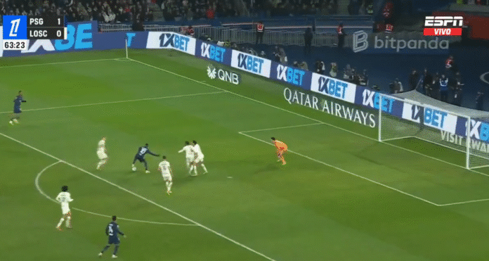 Dembélé sai pallon haltuunsa, jallitteli neljän Lille-pelaajan välissä ja lopuksi nosti pallon taidokkaasti reppuun, 2-0. Mestariteos!