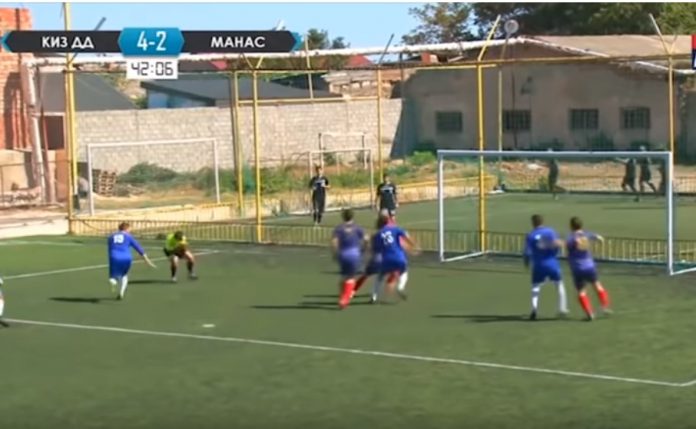 Manas sai rankkarin ja joukkueen pelaaja nimeltä Ali Japarov laukoi, mutta Keyes DD:n maalivahti torjui. Pallo kuitenkin kimposi suoraan erotuomari Atay Daudovin päähän ja siitä mukavalla kaarella maaliin.