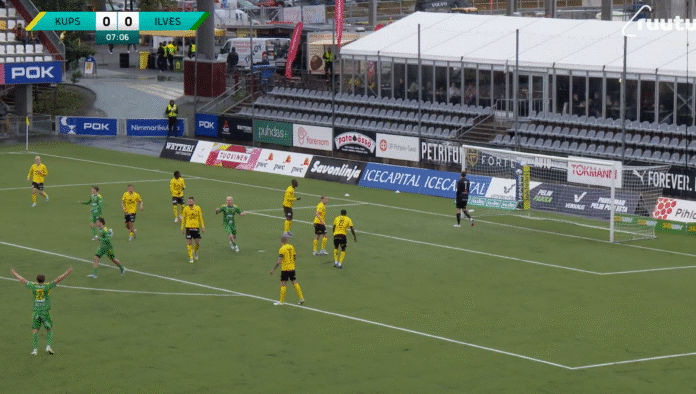 Riskin tekemän avausmaali oli upea, sillä konkari pamautti pallon voimalla yläriman kautta sisään, 0-1! Sen jälkeen kuopiolaisten verkko jatkui heilumistaan, ja Veikkausliigan parhaaksi maalivahdiksi usein tituleerattu Johannes Kreidl saa ottaa täysin kontolleen vähintään pari niistä.