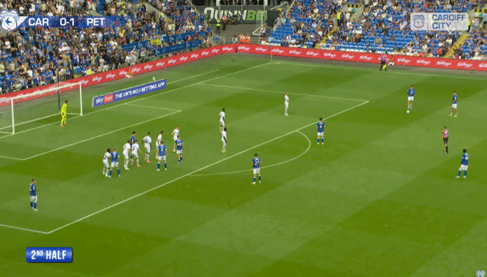 Cardiff sai vapaapotkun noin 20 metristä. Rubin Colwill pamautti täydellisellä kudilla pallon vastustamattomasti reppuun.
