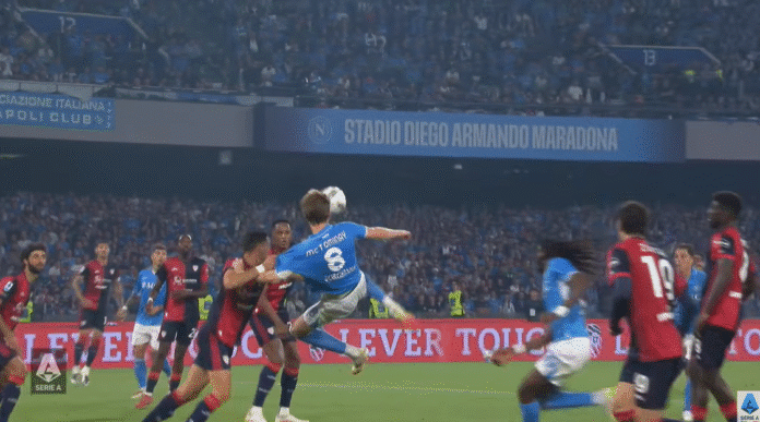 28-vuotias entinen ManU-hylkiö Scott McTominay viimeisteli kauden 12. maalinsa loisteliaalla volleylla. Napoli juhlii mestaruutta!