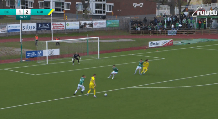 Klubi 04:n Stanislav Baranov painoi ottelussa hattutempun. Hänen kolmas maalinsa oli upea, kun taidokas kuti upposi oikeaan yläkulmaan, 1-3. Täksi kaudeksi Ykkösliigaan pudonnut EIF tuli lopussa vielä maalin päähän, mutta loppukiri jäi kesken.