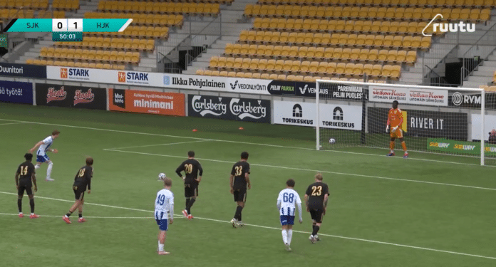 20-vuotias suomalaislaitapelaaja Stanislav Baranov viimeisteli tyylikkään Panenka-rankkarimaalin Klubi 04:lle Seinäjoella.
