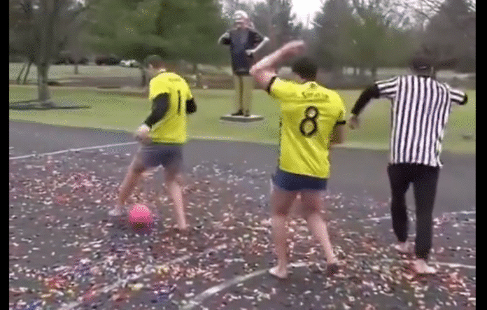 Mutta niin vaan joku on jossain keksinyt, että jalkapalloa voisi pelata keilapallolla legojen päällä ilman kenkiä. Ja vieläpä kovan alustan päällä eli kyllähän tällainen lajikokeilu vaatii hieman luonnetta.