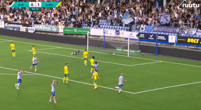 Heti Jukkolan maalin jälkeen HJK vaihtoi kentälle Teemu Pukin, joka oli kärsinyt jalkavaivoista. Ja saman tien Pukki painoi todella taidokkaalla laukauksella vaikeasta asennosta peli tasoihin.