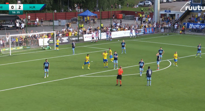 Santeri Hostikka lisäsi HJK:n johtoa 54. minuutilla, mutta vain pari minuuttia myöhemmin miesalivoimainen Gnistan kavensi. Gabriel Europaeus laukoi rankkarialueen takaa suoraan päin HJK-maalivahti Thijmen Nijhuisia, mutta kaikkien yllätykseksi pallo pomppi maaliin, 1-2.