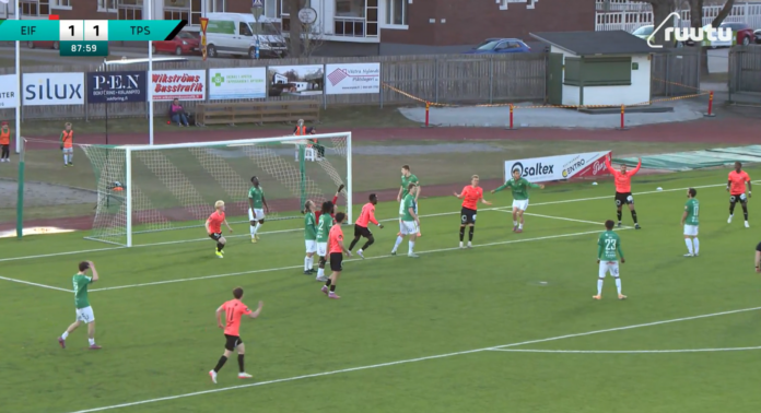 Ratkaisumaali nähtiin 88. minuutilla, kun TPS sai kulmapotkun. Pallo tuli maalinedustalla lopulta Tobias Karkulowskille, joka ohjasi taidokkaasti rinnallaan voittomaalin, 1-2.