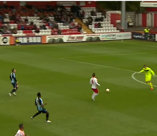 20-vuotias walesilainen keskuspuolustaja Dylan Lawlor painoi luultavasti uransa tyylikkäimmän maalin Englannin kolmanneksi korkeimmalla sarjatasolla.