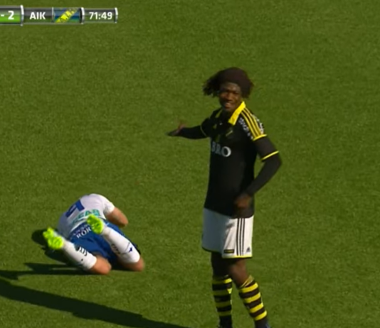 Brassipelaaja Paulinholta nähtiin Tanskan liigan hieno suoritus. Pallo yläkulmaan ja sen jälkeen FIFA-tuuletus.