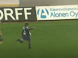 Mies ampui ottelussa sellaisen kierrepallon vastustajan maaliin, että se ansaitsee seisoma-aplodit vielä näin 9 vuotta...