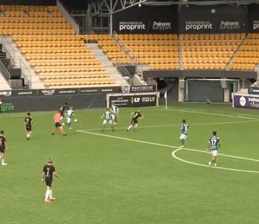 Video: Melkoinen onnenkantamoinen – FC Lahden Aaron Lindholm teki voittomaalin olkapäällään