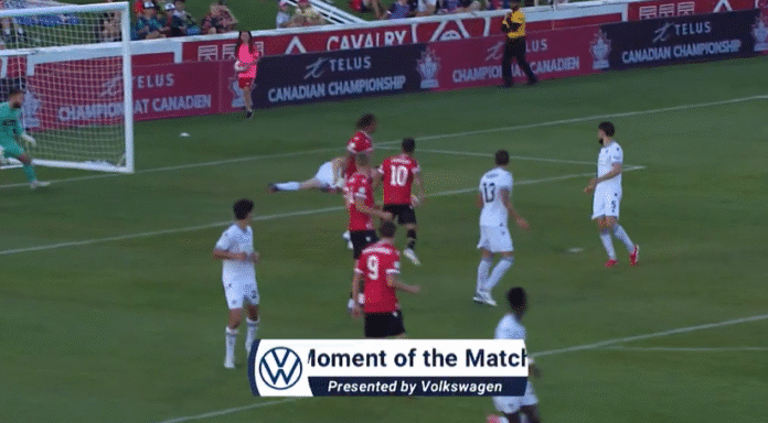 Kanadassa nähtiin harvinainen tilanne, kun Cavalry FC:n pelaajan kaukolaukaus päätyi maaliin loukkaantuneen Vancouverin puolustajan kautta.