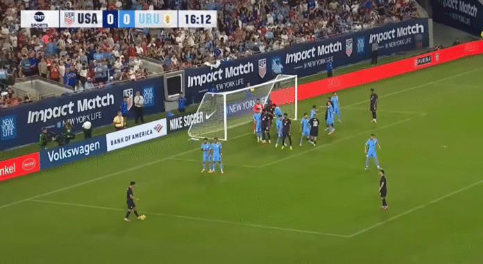 USA sai sivuvapaapotkun vasemmalta, ja pallon takana oli Sebastian Berhalter. Hän syötti pallon viereen Sergino Destille, joka antoi seinäsyötön takaisin, ja sitten Berhalter tykitti pallon reppuun.